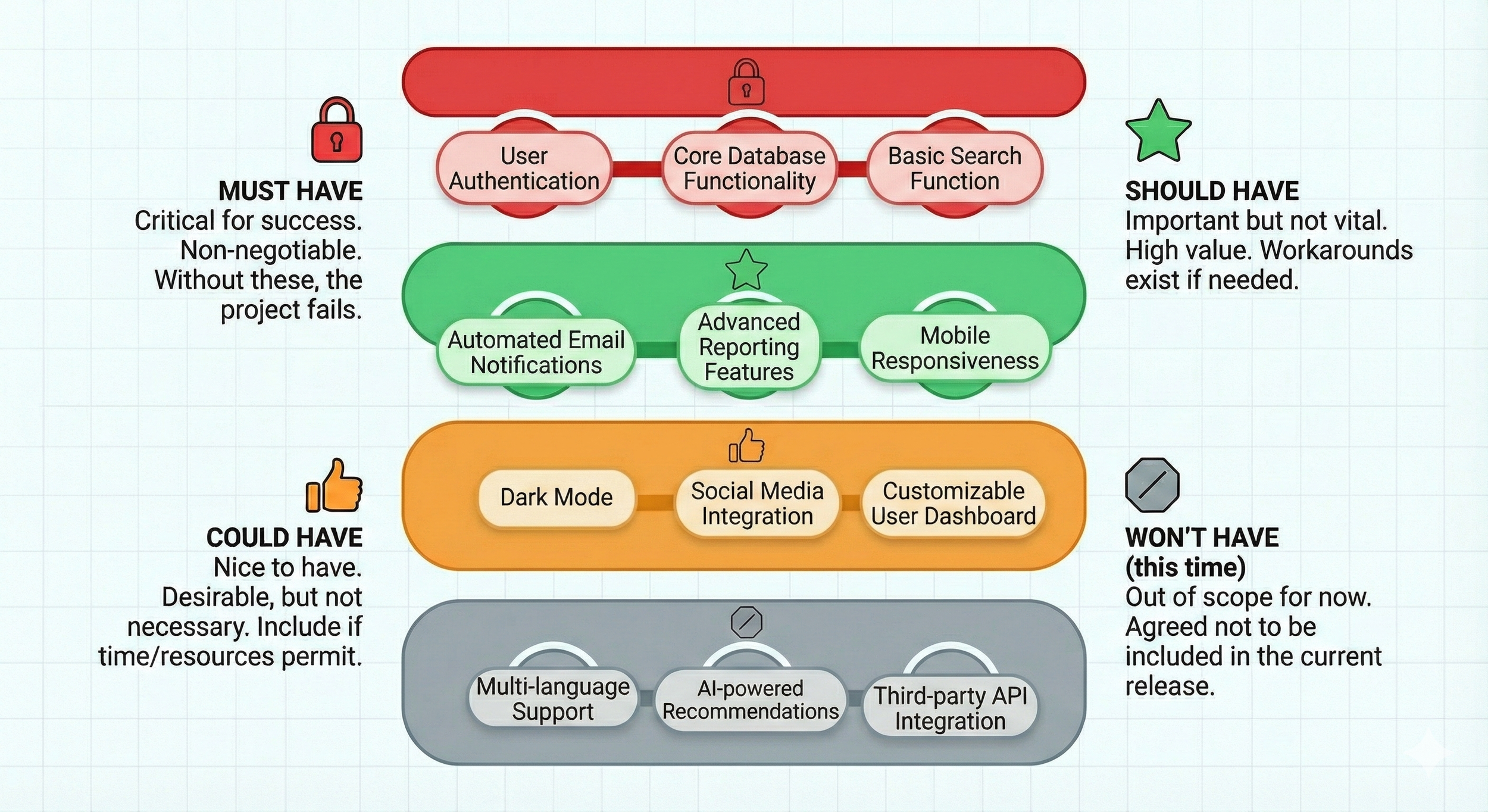 The MoSCoW Method is specifically useful for managing stakeholder expectations and protecting your team from over-commitment: